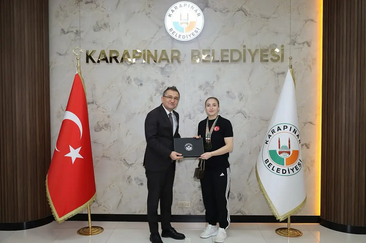Avrupa Gençler ve U23 Halter Şampiyonası'nda 63 kiloda 102 kilo kaldırarak ülkemizi başarıyla temsil eden Karapınarlı Hatice Karagöz, belediyede ağırlandı. Genç sporcunun azmi ve başarısı ilçede büyük gurur kaynağı oldu.