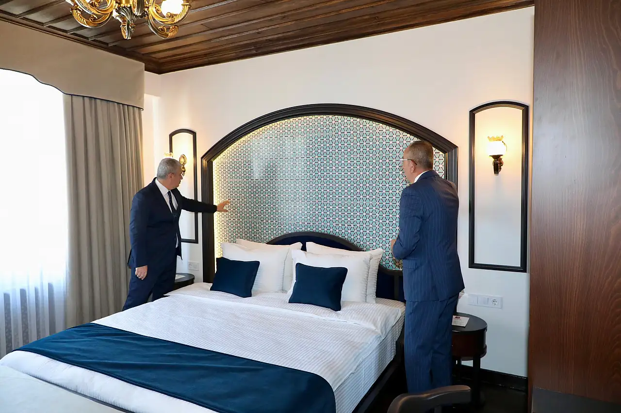 Tarihi Sırçalı Medrese’den ilham alınarak inşa edilen ve modern konforla tarihi dokuyu buluşturan otelde incelemelerde bulunan Vali Akın, otelin mimari özellikleri, misafirlerine sunduğu hizmetler ve sürdürülebilir turizm anlayışı hakkında yetkililerden bilgi aldı. Akın’a ziyaretleri sırasında Meram Belediye Başkanı Mustafa Kavuş eşlik etti.