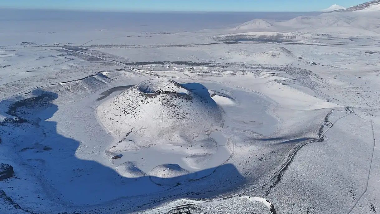 Konya'nın Karapınar ilçesindeki Meke Krater Gölü, kar yağışının ardından beyaza büründü. Kartpostallık görüntüler oluşturan göl, fotoğraf tutkunları, doğaseverler ve yerli-yabancı turistlerin ilgi odağı oldu.