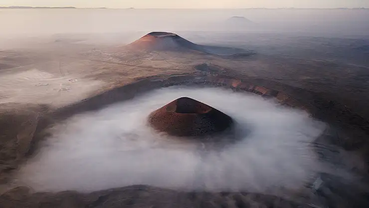 Konya'nın Karapınar ilçesindeki Meke Gölü, sabah saatlerinde etkili olan sisle birlikte adeta görsel bir şölene dönüştü. 'Dünyanın nazar boncuğu' olarak bilinen gölde oluşan manzaralar hayran bıraktı.