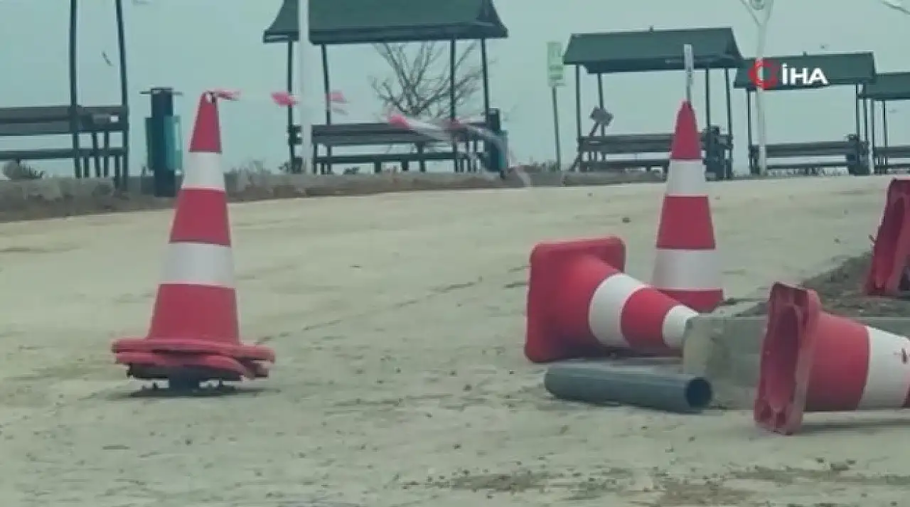 Fırtınanın etkisiyle ilçe genelinde çöp konteynerlerinin yerinden sürüklendiği, hafif yapı malzemelerinin ise rüzgarla savrulduğu gözlendi.