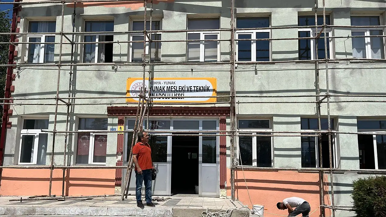 Yunak İlçe Milli Eğitim Müdürlüğüne bağlı temel eğitim ve ortaöğretim okulları yeni eğitim öğretim yılına hazırlık kapsamında tadilat, tamirat ve tezyin işlemlerine hız verdi. Birçok okulun iç ve dış cephe boyaları yapılırken, 6 okulun da çatı değişim ve onarım işlemleri devam ediyor. Bahçe alanlarının temizliği, sınıfların ve diğer müştemilâtların bakımı, boya ve badana işlemleri ile ıslak zeminler, su ve kalorifer tesisatları elden geçirilerek bakımları yapılıyor.