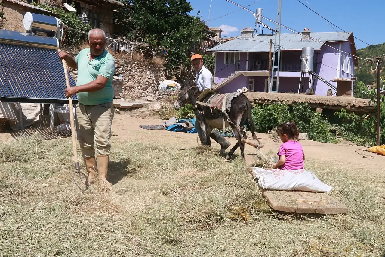 Sabahın erken saatlerinde harman yerlerinde başlayan düven sürme işi, gün batımına kadar aralıksız devam ediyor. İlkbahar sonlarında orakla biçilen otlar, evlerin damlarında ya da harman yerlerinde kurutuluyor. Yaklaşık iki ay güneşte bekletilen otlar, daha sonra düvenle ezilerek saman haline getiriliyor. Bu doğal yöntem, hayvan yemi olarak daha kaliteli saman elde edilmesini sağlarken, kültürel bir mirasın da yaşatılmasına katkı sunuyor.