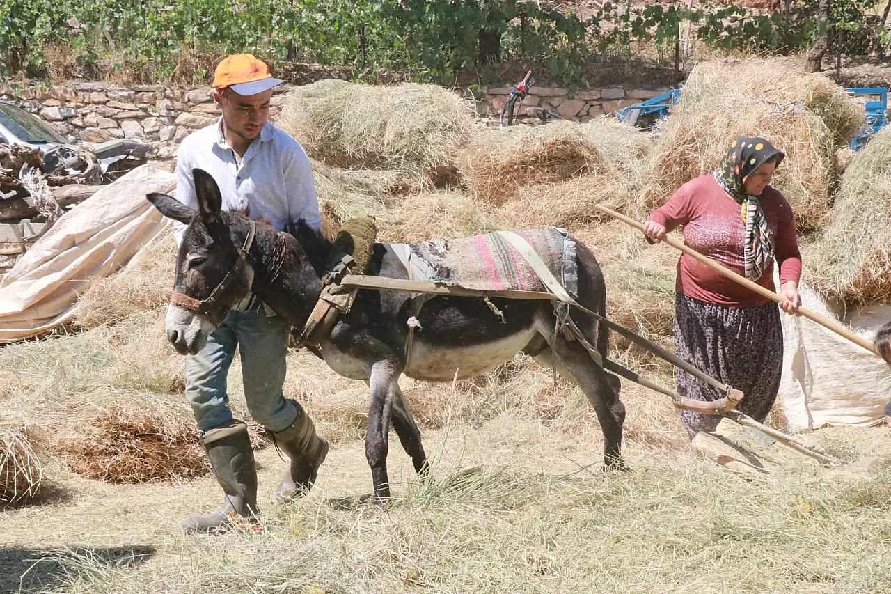 Konya'nın Orta Toroslar arasında yer alan Hadim ilçesinde, yüzyıllardır kullanılan tarım aletlerinden biri olan düven, modern tarım makinelerine rağmen hâlâ hayatın bir parçası olmaya devam ediyor. İlçeye bağlı Gerez Mahallesi’nde çiftçiler, geleneksel yöntemlerle saman üretimini sürdürüyor.