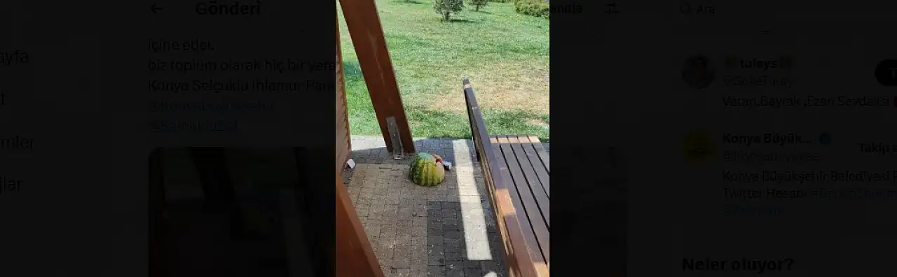 Konya'nın Selçuklu ilçesindeki Ihlamur Parkı'nda yere atılan karpuz görüntüsü sosyal medyada tepki topladı.