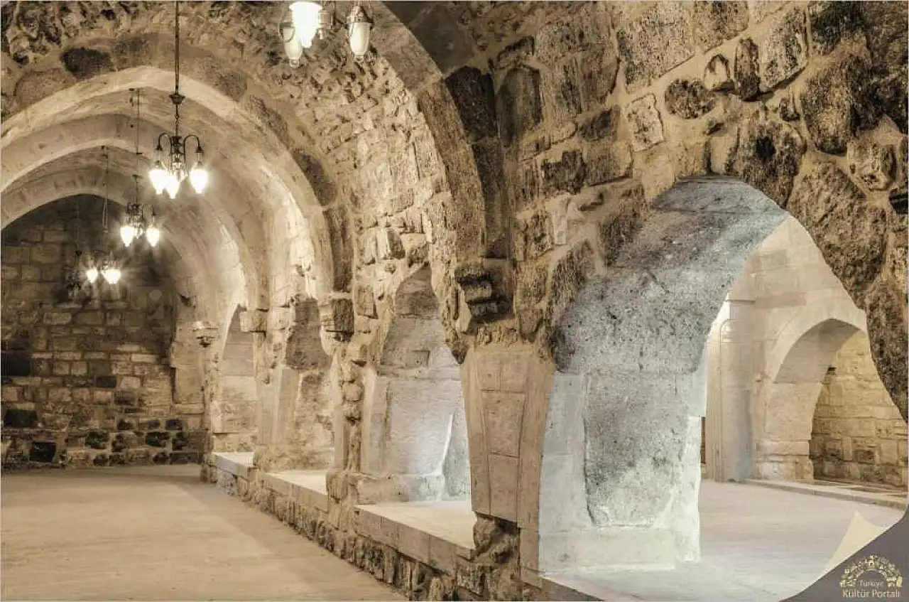Taştan yapılmış yem ve su tekneleri ile duvarlardaki kandil nişleri, dönemin kervansaray yaşamını canlı bir şekilde yansıtıyor. Kapalı bölümün sol yanındaki merdiven izleri ise üst yapıya çıkış olduğunu gösteriyor.