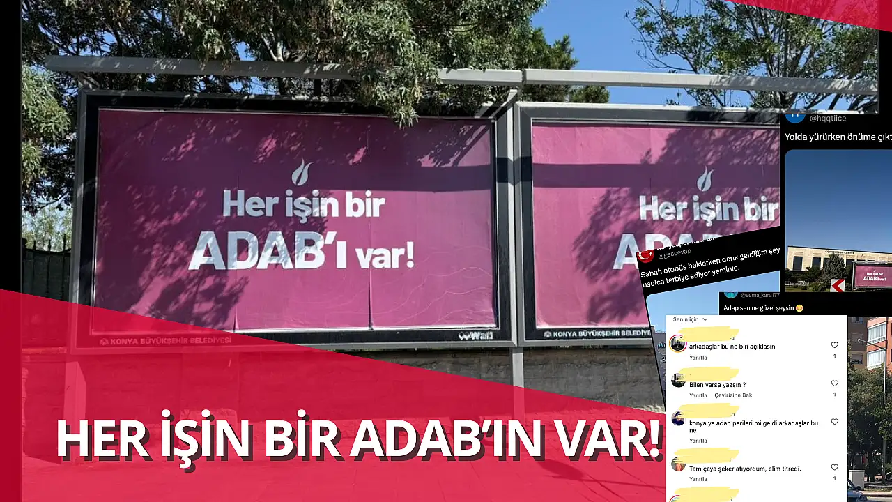 Konya sokaklarında beliren 'Her işin bir ADAB'ı var!' sloganı, kimin tarafından verildiği bilinmeyen gizemli bir kampanyayla vatandaşların merakını uyandırdı.