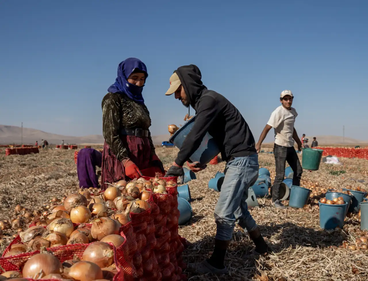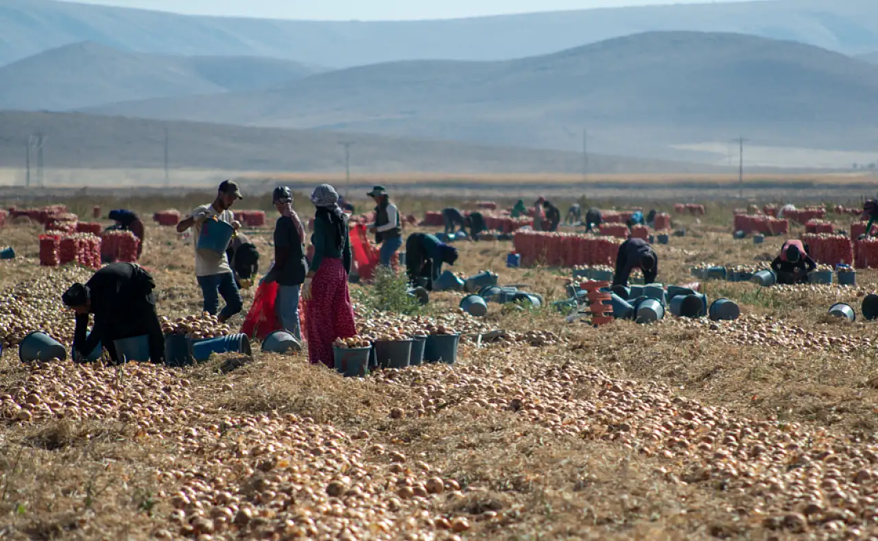 Konya'nın Karatay ilçesinde soğan tarlalarında hasat hareketliliği başladı. Karadona Mahallesi'nde sabahın erken saatlerinde tarlalara giden mevsimlik işçiler, yoğun mesaiyle sezonun ürünlerini topluyor.