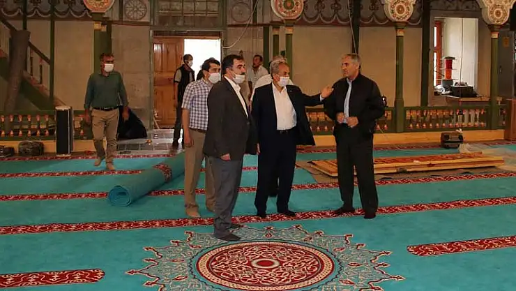 İlk olarak restorasyonu tamamlanma aşamasına gelen Akşehir Hasanpaşa İmaret Cami’sinde incelemelerde bulunan heyet, yapılan çalışmalar hakkında restorasyonu yapan firma yetkilisinden bilgiler aldı.