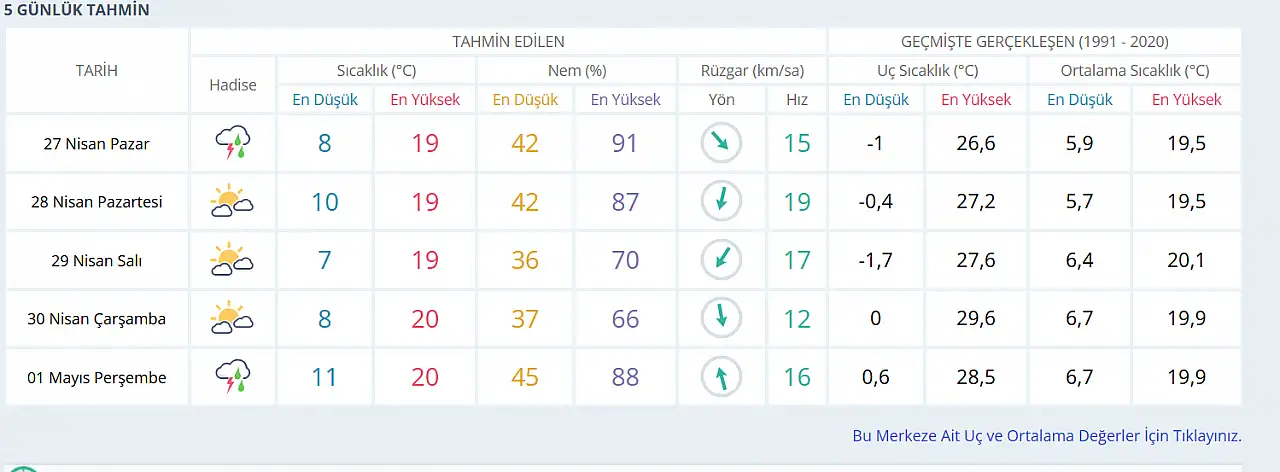 27 Nisan Pazar Gökgürültülü Sağanak Yağışlı 8 19