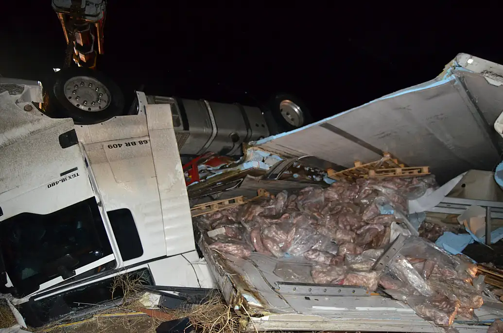 Aksaray-Konya kara yolunda et yüklü TIR kontrolden çıkarak bariyere çarpıp devrildi. Kazada 56 yaşındaki şoför Rıza Er yaşamını yitirdi. Gece saatlerinde meydana gelen kazayla ilgili soruşturma başlatıldı.
