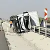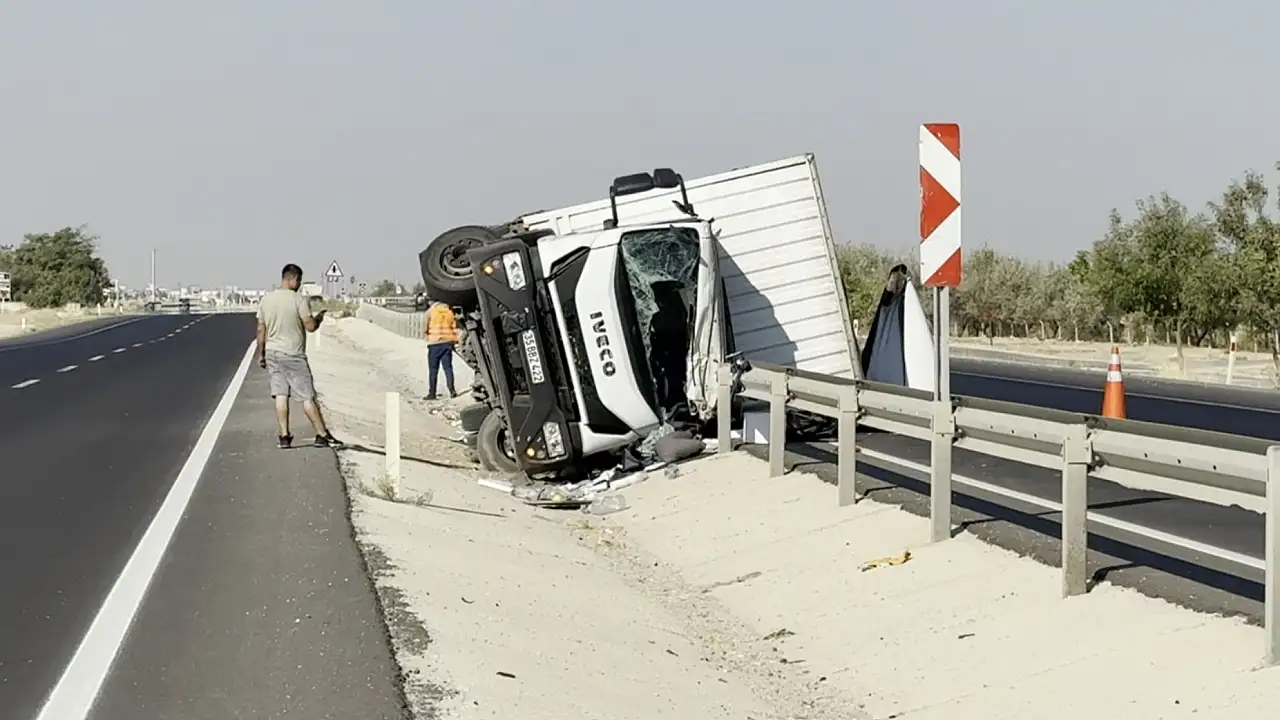 Konya yolunda kamyonet yan yattı: Faciayı bariyerler önledi