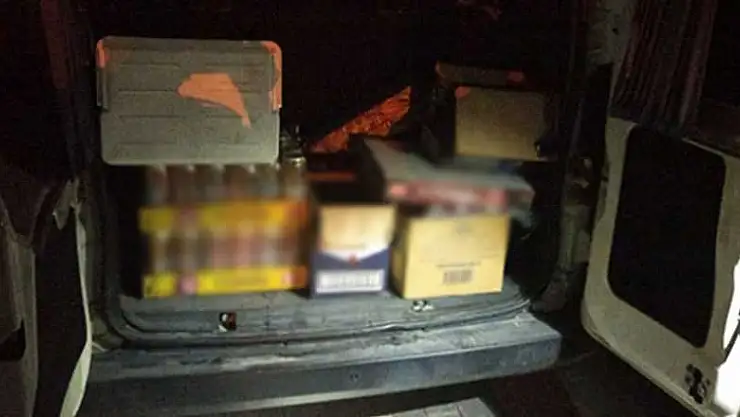 Araçta yapılan arama sonucunda 92 şişe alkol ele geçirildiği bildirildi.