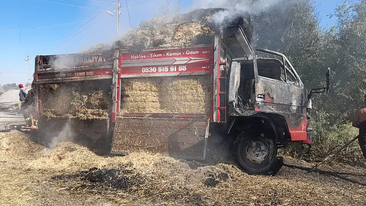 İhbar üzerine olay yerine gelen itfaiye ekiplerince söndürülen yangında saman balyası yüklü kamyonet kullanılamaz hale geldi.
