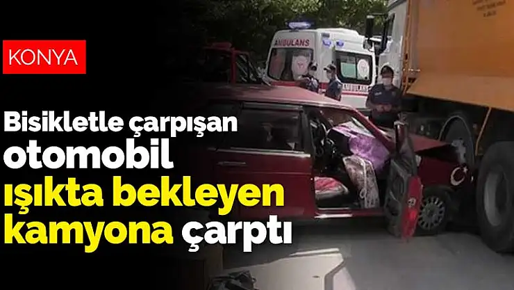 Konya'da bisikletle çarpışan otomobil ışıkta bekleyen kamyona çarptı