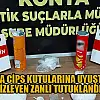 Belirlenen adreste gözaltına alınan şüphelinin üzerindeki cips kutularının içinde 770 gram metamfetamin ele geçirildi.