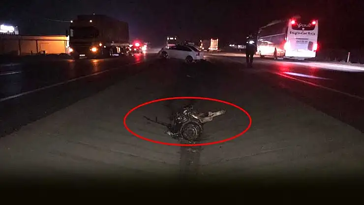 Refüje savrulan otomobilin motoru çarpışmanın şiddetiyle araçtan koparak 25 metre ileriye fırladı.