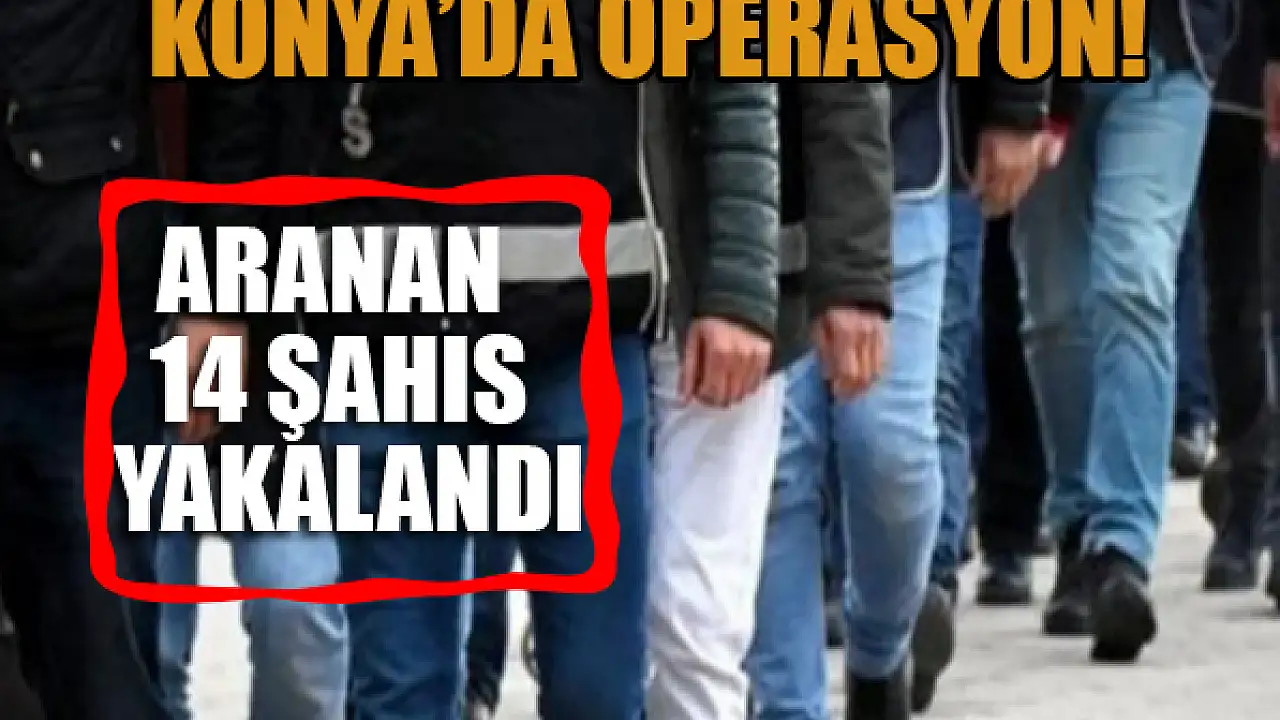 Konya'da kasten öldürme, kasten yaralama, hırsızlık, tehdit ve yağma gibi birçok suçtan aranması olan 14 kişi polisin düzenlediği operasyonlarla yakalandı.
