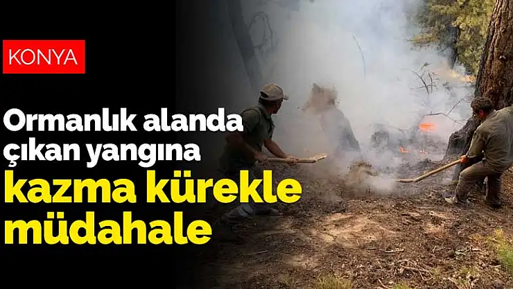Konya'da ormanlık alanda çıkan yangına kazma kürekle müdahale