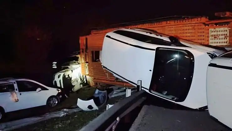 Konya'nın Kulu ilçesinde sıfır kilometre araçları taşıyan tırın devrilmesi sonucu sürücü yaralandı, araçlarda maddi hasar meydana geldi.