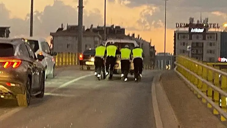 Edinilen bilgiye göre, merkez Selçuklu ilçesinde Yeni İstanbul Caddesi ile Çevre Yolu Caddesini birbirine bağlayan üstgeçitte hafif ticari bir araç akşam saatlerinde arıza yaptı. Olayı gören trafik polisleri, sürücünün mağdur olmaması için aracı itmeye başladı. İş çıkışı kalabalık olan üstgeçitte 4 trafik polisinin aracı ittiği anlar cep telefonu kamerasına yansıdı. Aracı yol kenarına kadar iten trafik polisleri, daha sonra sürücüye gerekli yardımı sağladı.