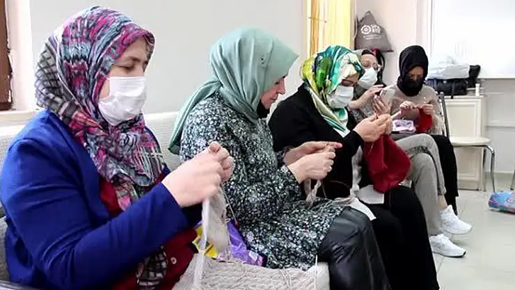 Proje kapsamında Meram ASEM Şiş Örgü Sınıfında eğitim gören 48 anne gönüllü olarak çocuklara yönelik atkı ve bere hazırlamak için kolları sıvadı.