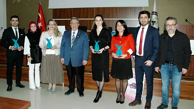 Konya Eczacı Odası Başkanı Uzm. Ecz. Ahmet Hakan Koru toplantı sonunda Kampotu İlaç Genel Müdürü Beril Koparal Ergün, Voonka Medikal Eğitim ve Proje Müdürü Kübra Erdugan ile Voonka ekibine günün anısına semazen figürlü birer plaket takdim etti.