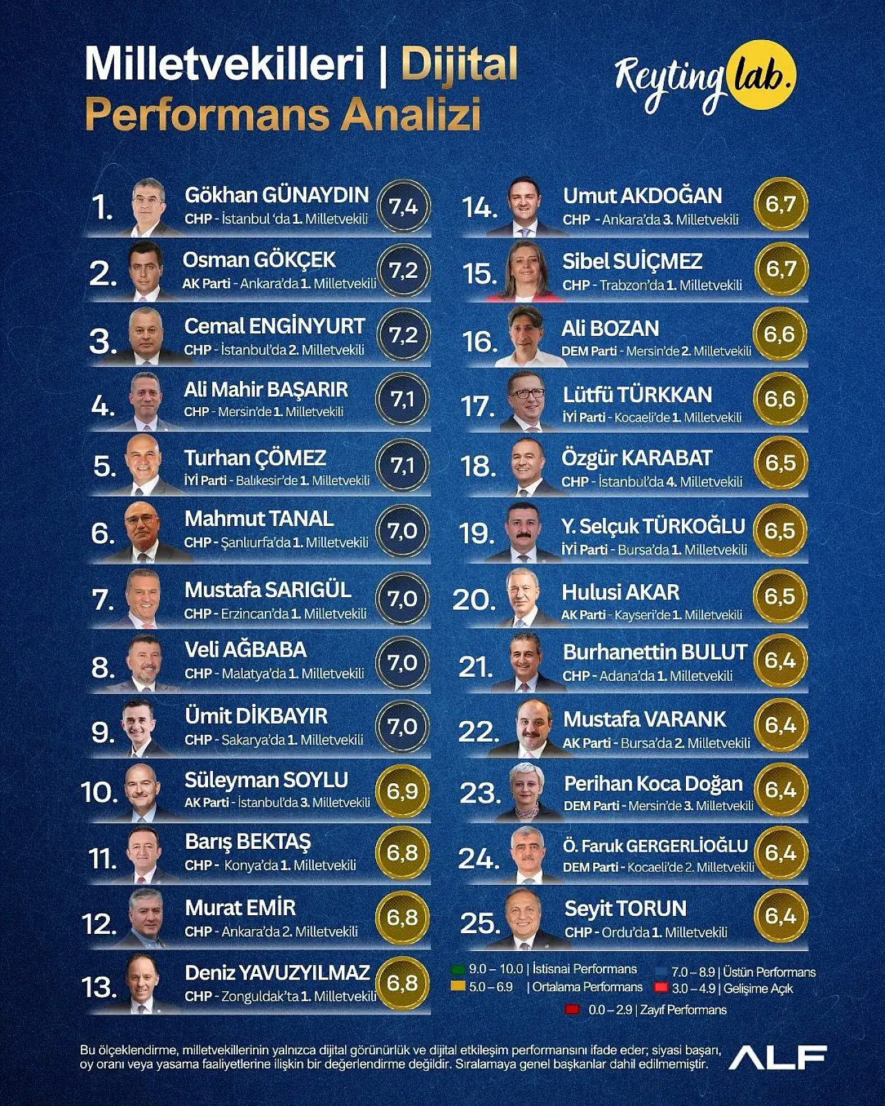 ALF Araştırma’nın, Türkiye Büyük Millet Meclisi’ndeki 600 milletvekilinin dijital performansını mercek altına aldığı analiz çalışması kamuoyuyla paylaşıldı. Görüntülenme, etkileşim, içerik kalitesi ve ortalama etkileşim oranlarına göre yapılan değerlendirmede CHP Konya Milletvekili Barış Bektaş dikkat çeken bir başarı elde etti.