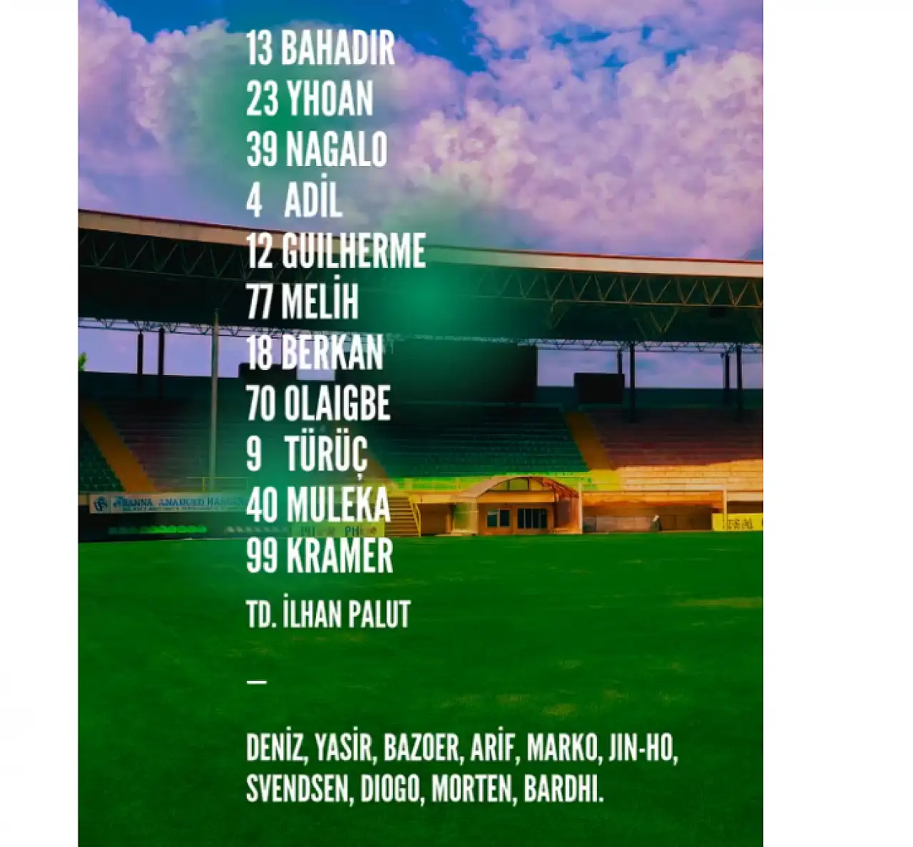 Kalede Bahadır yer alırken, savunmada Yhoan, Nagalo ve Adil görev yaptı. Orta sahada Guilherme, Melih ve Berkan oyunu yönlendirirken, kanatlarda Olaigbe ile Türüç forma giydi. Hücum hattında ise Muleka ve Kramer ile gol arayacaklar.