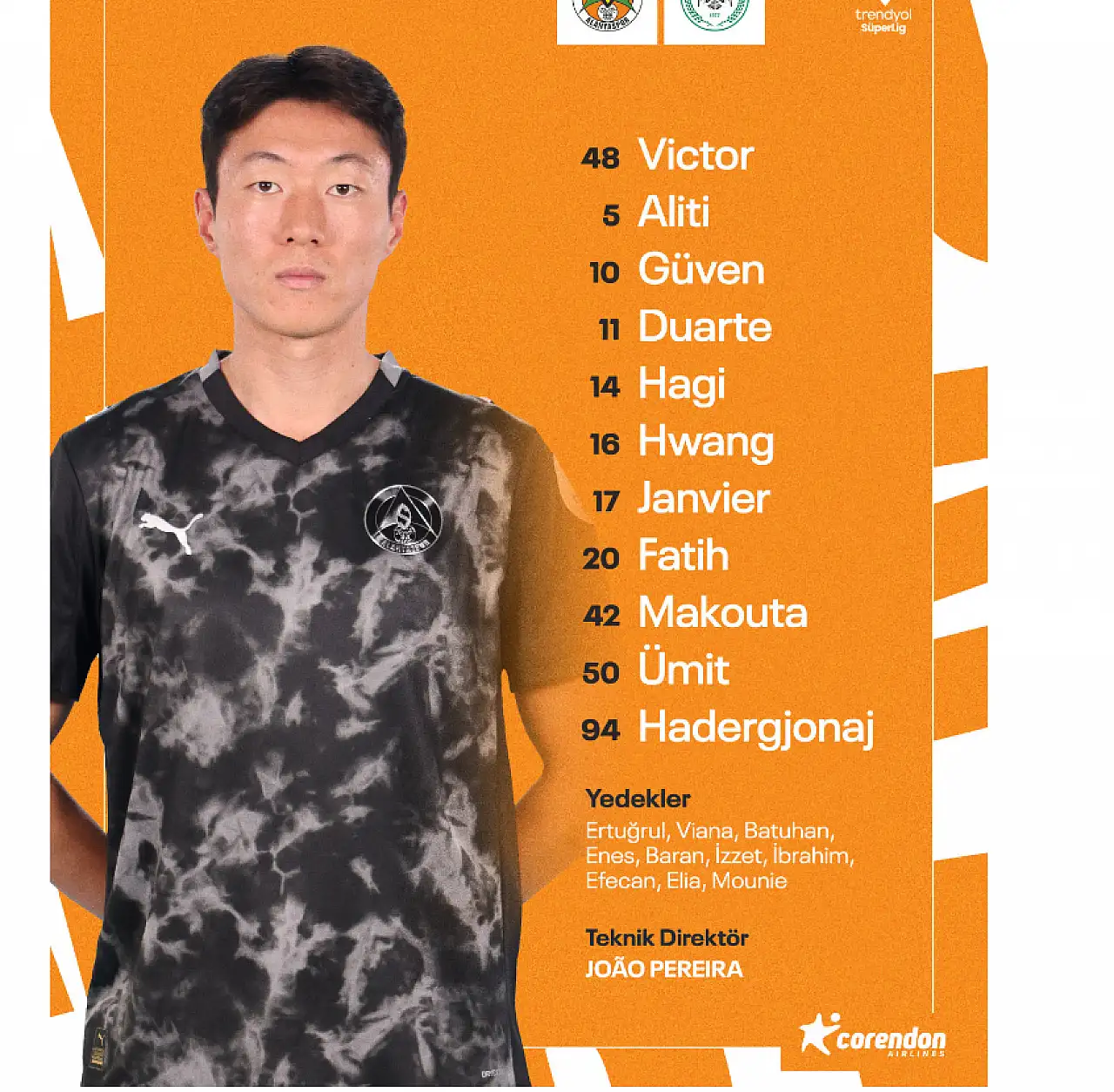 Ev sahibi ekipte kaleyi Victor korurken, defans hattında Aliti, Güven, Duarte ve Hadergjonaj yer aldı. Orta sahada Hagi, Janvier, Fatih ve Makouta sorumluluk alırken, hücumda gol girişimlerini Hwang ile Ümit üstlenecek.