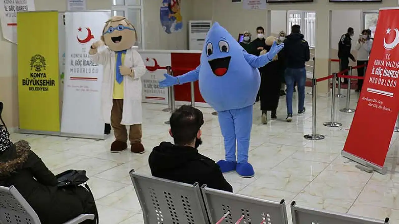 Konya’da yaşayan göçmenlerin işlem yaptırmak için gelip, bekleme salonunda beklediği sırada başlayan sürpriz oyun büyük bir ilgiyle izlendi.
