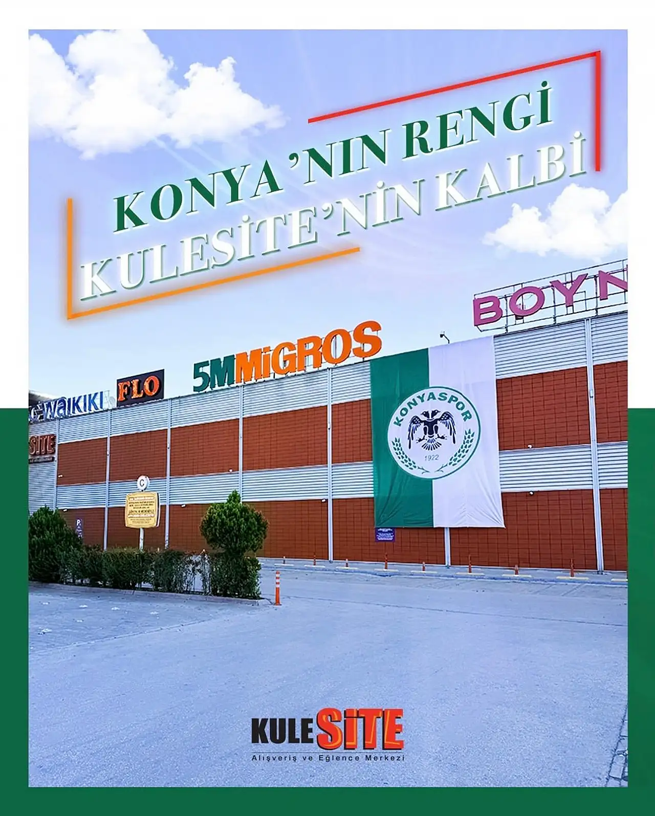 Kulesite AVM, dış cephesine büyük boy Konyaspor bayrağı asarak, takıma desteğini anlamlı bir şekilde ortaya koydu.