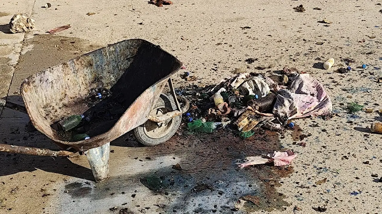İtfaiye ekipleri, patlama sonrası okul bahçesinde soğutma çalışmaları yaptı ve tüplerin parçalarını topladı.