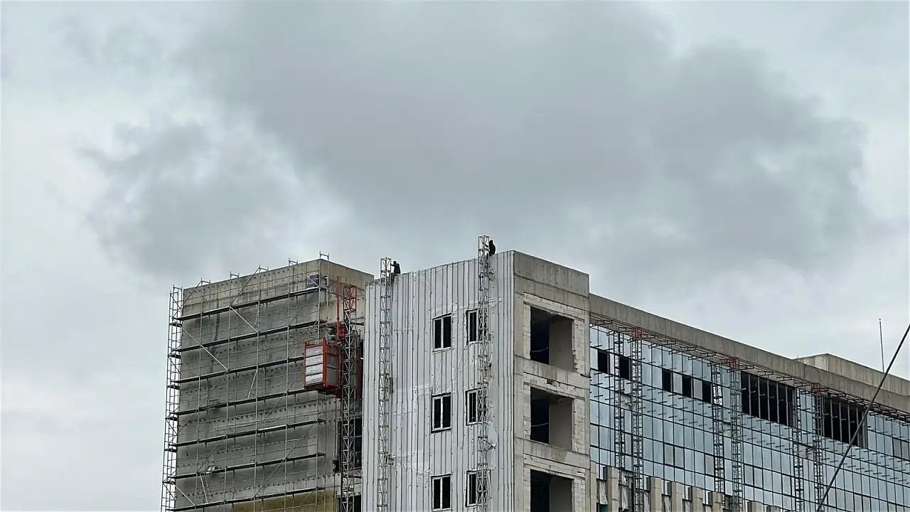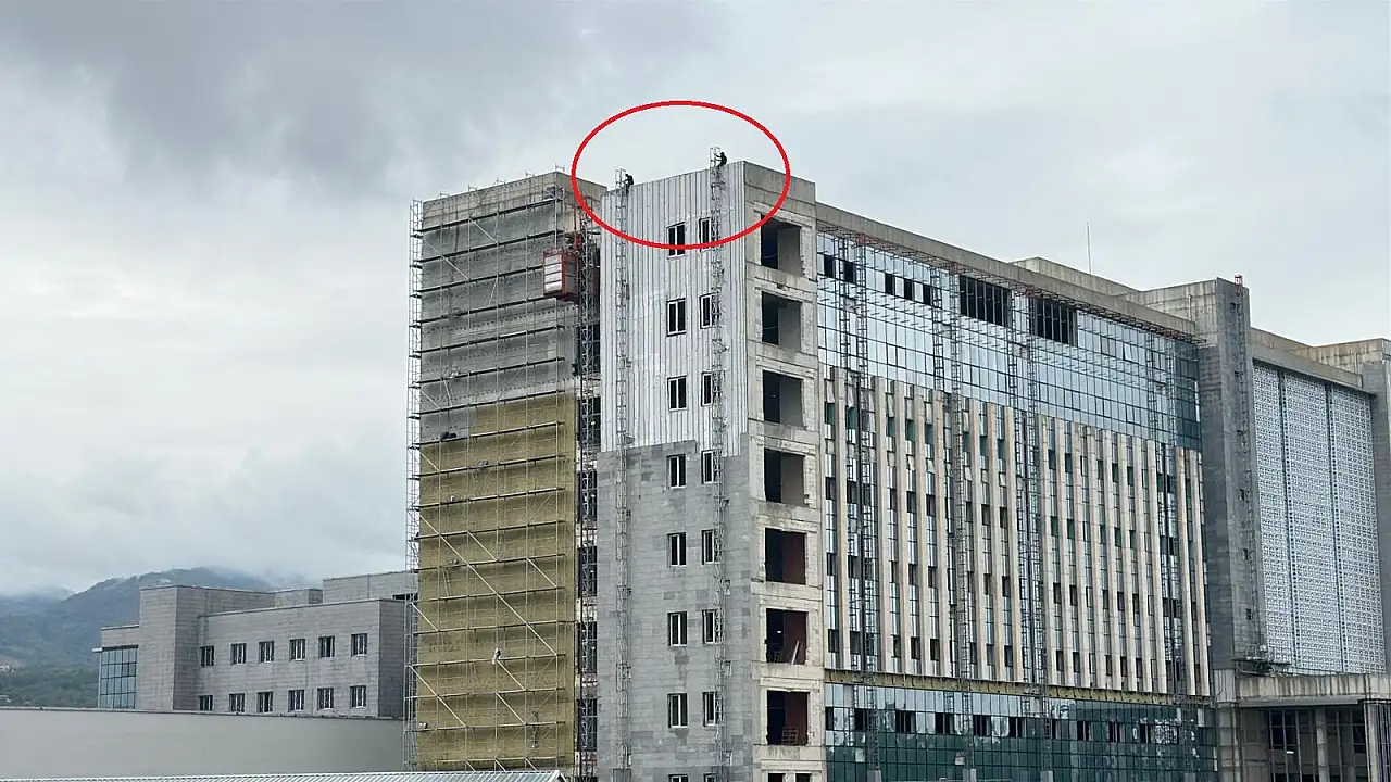 Samsun'da devlet hastanesinde çalışan 2 işçi, taşeron firmadan paralarını alamadıkları gerekçesiyle inşaatın çatısına çıkarak, eylem yaptı.