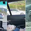 Ani fren yaparak ve makas atarak ilerleyen sürücü, ailenin bulunduğu otomobili seyir halindeyken tehlikeye soktu. Bir süre böyle devam eden yolculuk sonrasında maganda sürücü, çocuklu aileyle birlikte toplam 4 araca çarparak kaza yaptı.