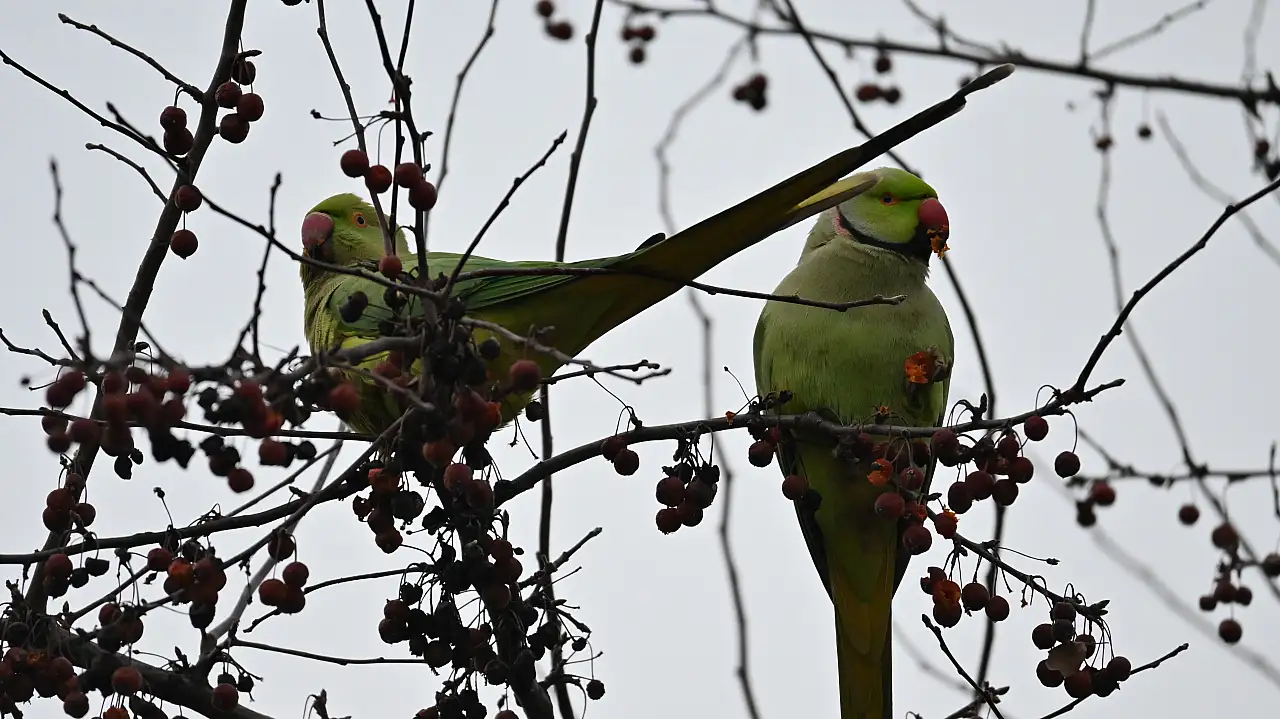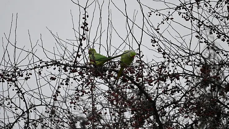 Eskişehir'in Tepebaşı ilçesindeki bir parkta ortaya çıkan papağanlar, ağaçlardaki yemişlerle beslenirken görüntülendi. Günlerdir aynı alanda dolaşan egzotik kuşlar, parkta alışılmadık bir manzara oluşturdu.