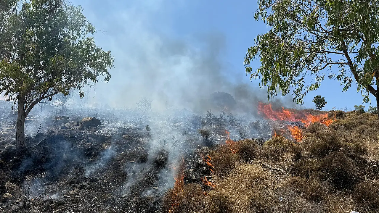 Muğla'nın Bodrum ilçesinde makilik ve otluk alanda yangın çıktı.