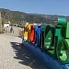 Sahilde su sporları standında bekleyen turizmci, "Hep beraber bayramı bekliyoruz. Pandemi bitsin, dünya bu illetten kurtulsun istiyoruz" dedi.