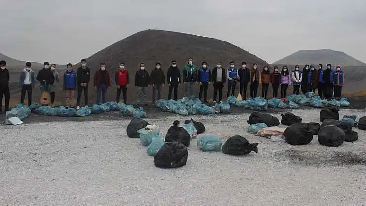 Yaklaşık 4 saat devam eden temizlikte, çevre gönüllüleri göl çevresine atılan şişeleri, yiyecek atıklarını, izmaritleri ve kirliliğe yol açan diğer maddeleri topladı.