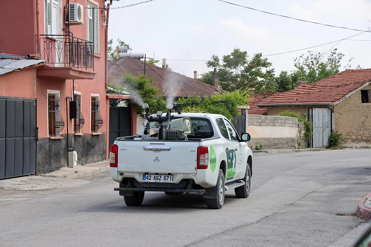 Meram Belediyesi'nden çevre sağlığı için yoğun ilaçlama mesaisi