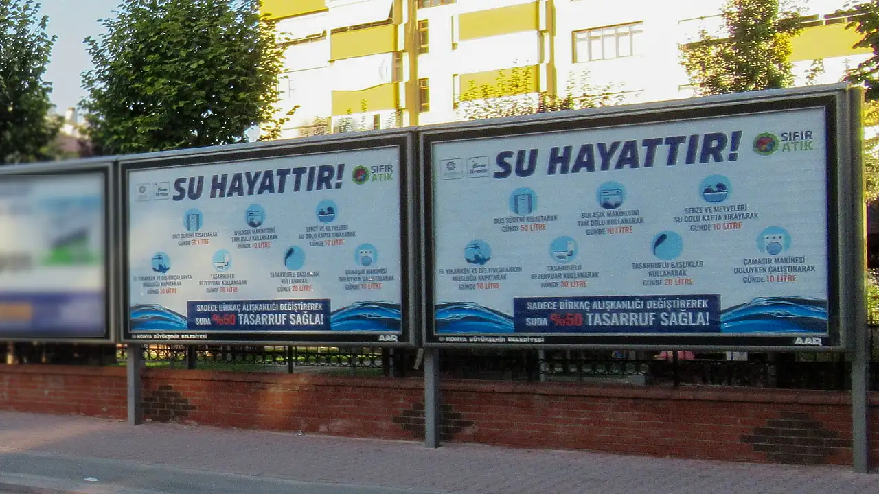 Meram Belediyesi, kurak geçen mevsimlerin ardından artan su sıkıntısına dikkat çekmek amacıyla ilçede kapsamlı bir bilinçlendirme kampanyası başlattı. Kampanya kapsamında ilçenin birçok noktasına asılan afiş ve billboardlarla, vatandaşlara su tasarrufu çağrısı yapıldı.