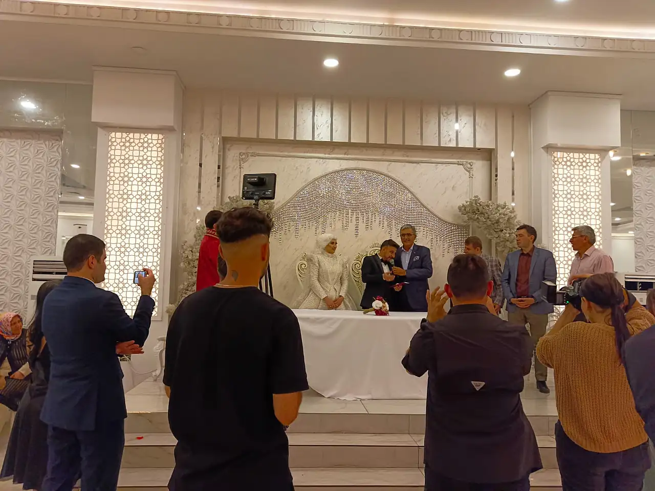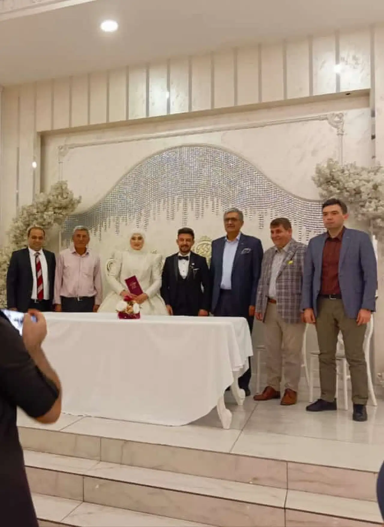 Düğün merasimi boyunca çiftin sevinci yüzlerinden okunurken, davetliler de bu mutlu ana tanıklık ederek genç çifte ömür boyu mutluluk dileklerinde bulundu.