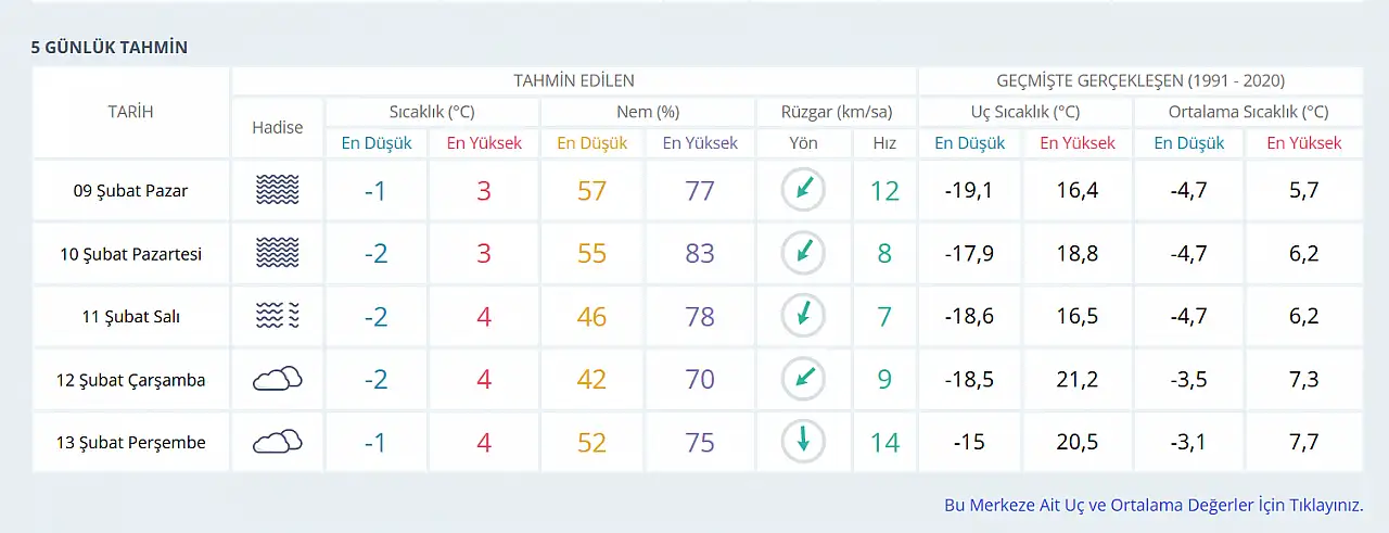 13 Şubat Perşembe Çok Bulutlu -1 4