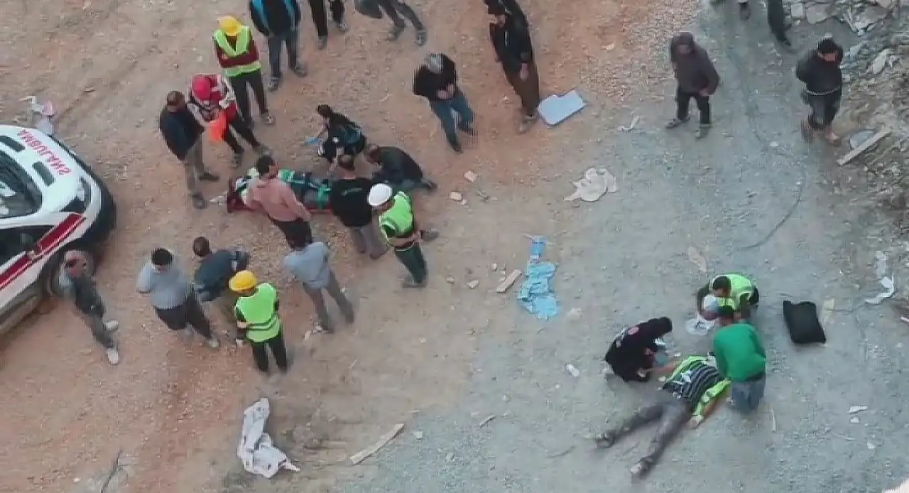 Hatay'da şantiye alanında 25 metrelik vincin kırılmasıyla yere düşen 2 işçi, metrelerce yükseklikten yere çakılarak yaralandı.