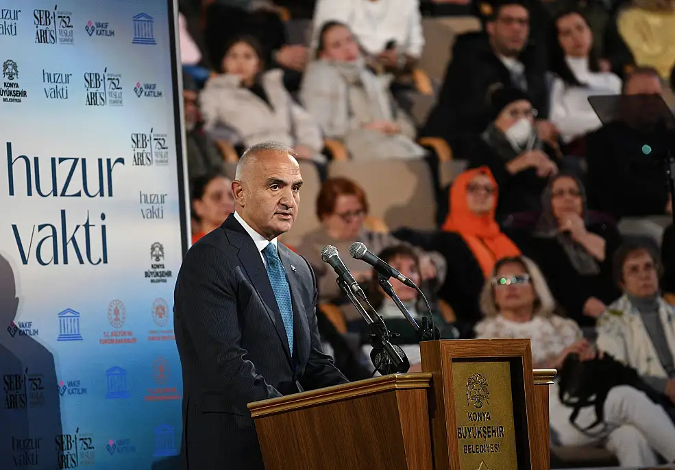 Kültür ve Turizm Bakan Mehmet Nuri Ersoy da, Hazreti Mevlana'nın "Aşk nedir?" Sorusuna "Ben ol da bil." şeklinde cevap verdiğini hatırlatarak, insanların Mevlana’nın eserlerinden alacağı lezzet ve ibretin de farklı olacağını söylemenin yanlış olmayacağını belirtti.