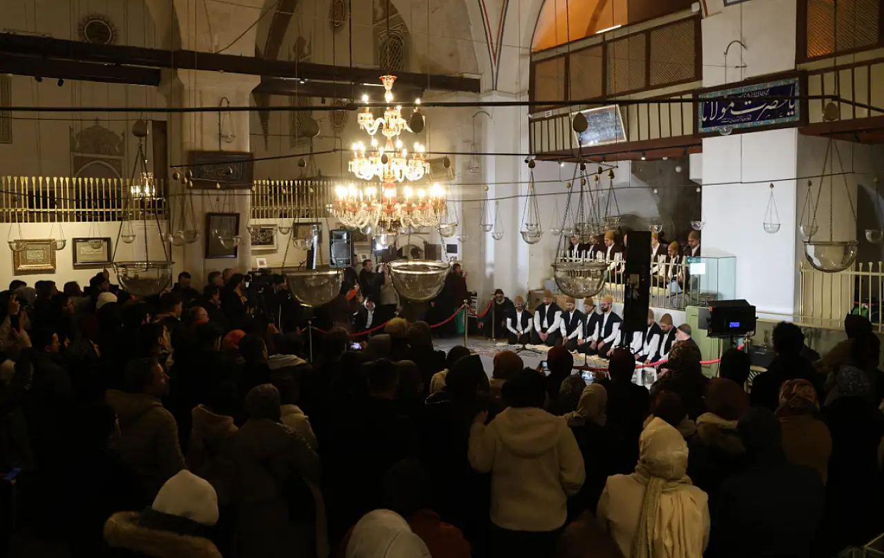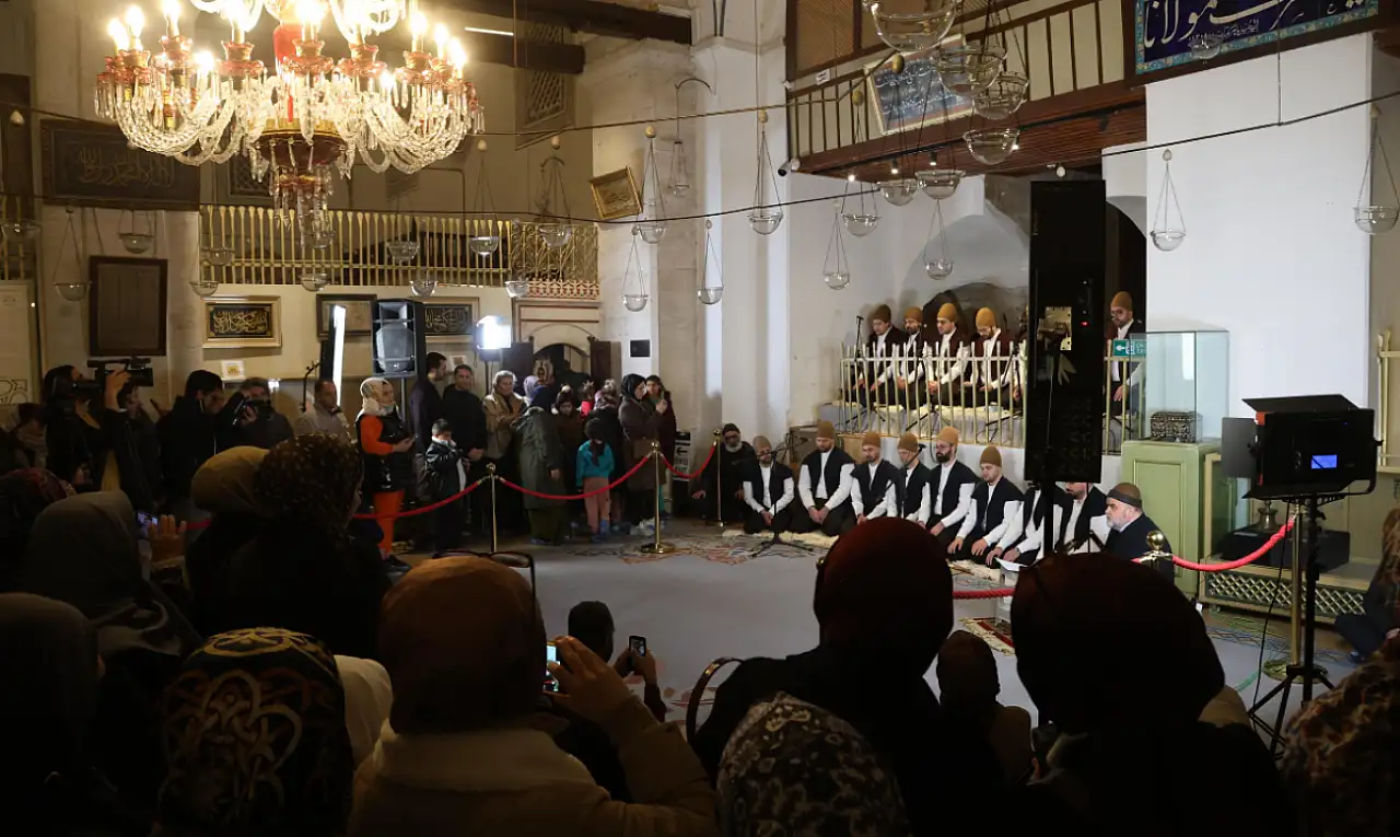 Konya Büyükşehir Belediyesi Türk Tasavvuf Musikisi ve Sema Topluluğu, mübarek Miraç Kandili'nde anlamlı bir programa imza attı. Peygamber Efendimiz Hazreti Muhammed'in (S.A.V.) Miraç hadisesini konu alan ve Türk Tasavvuf Musikisi'nin en seçkin formları arasında yer alan Miraciye, yaklaşık 100 yıl aradan sonra Mevlânâ Türbesi'nde yeniden seslendirildi.