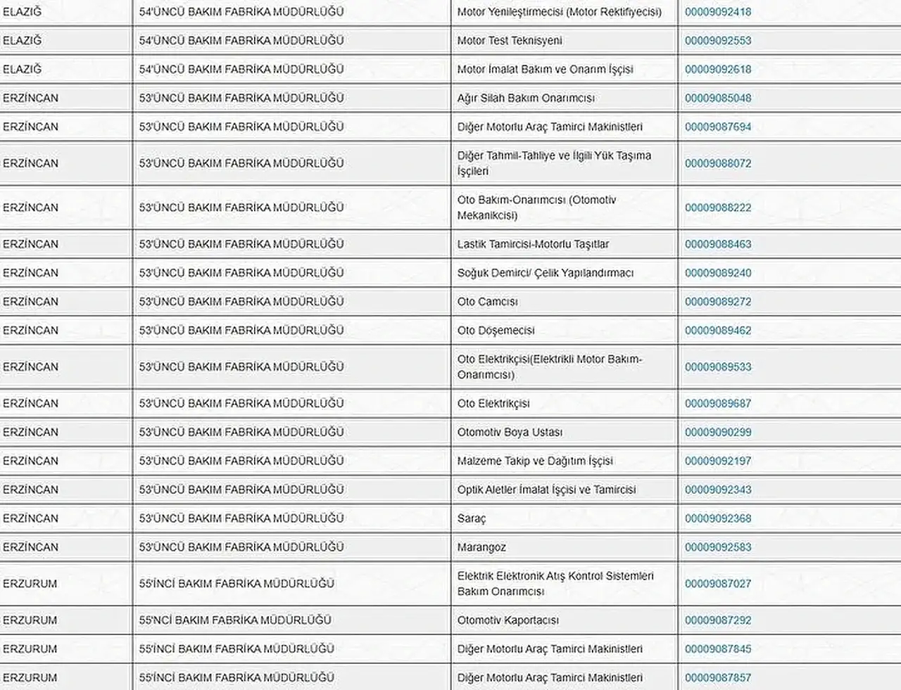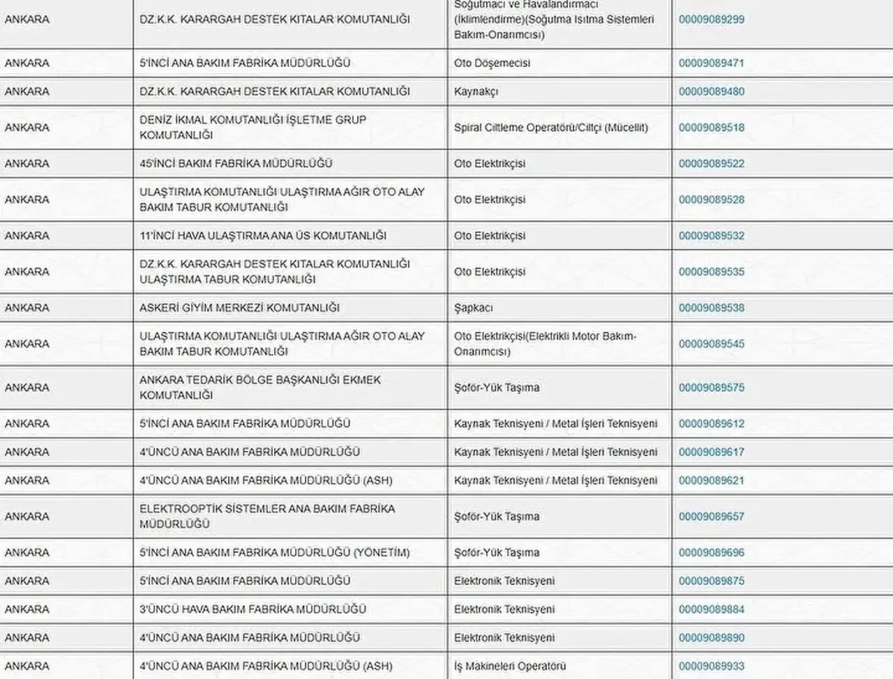 MSB, toplamda 135 farklı meslek dalında personel alımı gerçekleştirecek. Öne çıkan bazı kadrolar ve kontenjanlar şöyle: