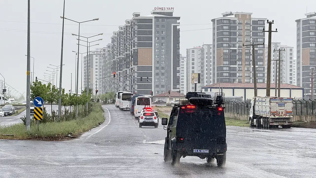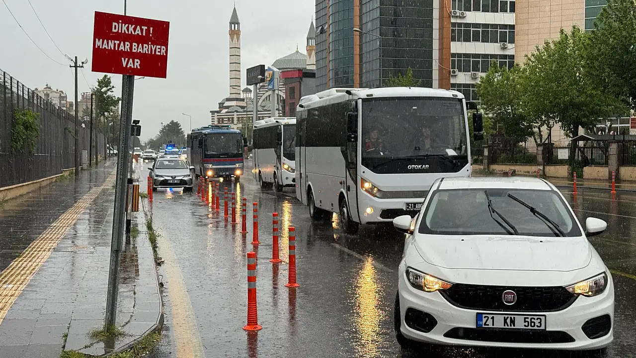 Tutuklu sanıklar, Diyarbakır Ceza İnfaz Kurumları Kampüsü'nden cezaevi nakil araçlarıyla geniş güvenlik önlemi alınarak Diyarbakır Adliyesi'ne getirildi.
