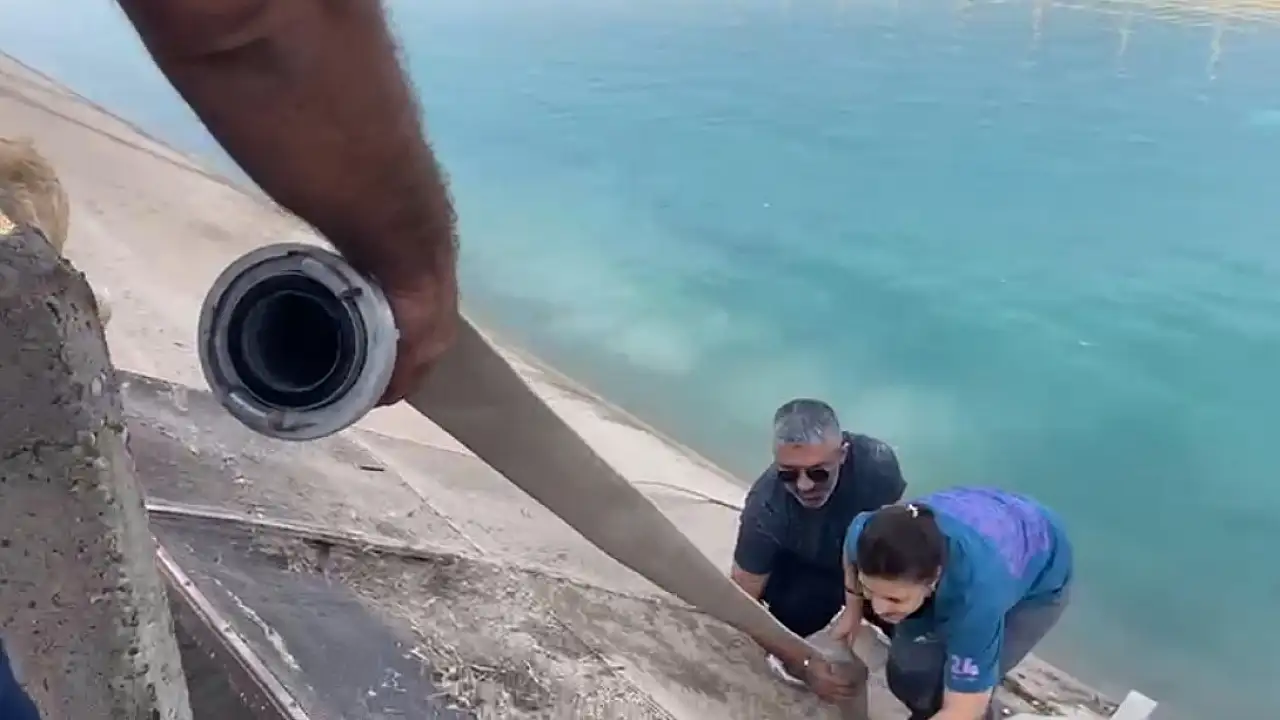 Belediyenin sulama tankerinin oradan geçmesinin kendileri için büyük bir şans olduğunu aktaran Erdinç Dilaver'de kanalın kenarı yamaç ve kaygan olduğu için eşimin de gücü kalmadı. Hortum uzatıp belediye ekipleriyle birlikte hem eşimi hem de köpeği kurtardık" şeklinde konuştu.