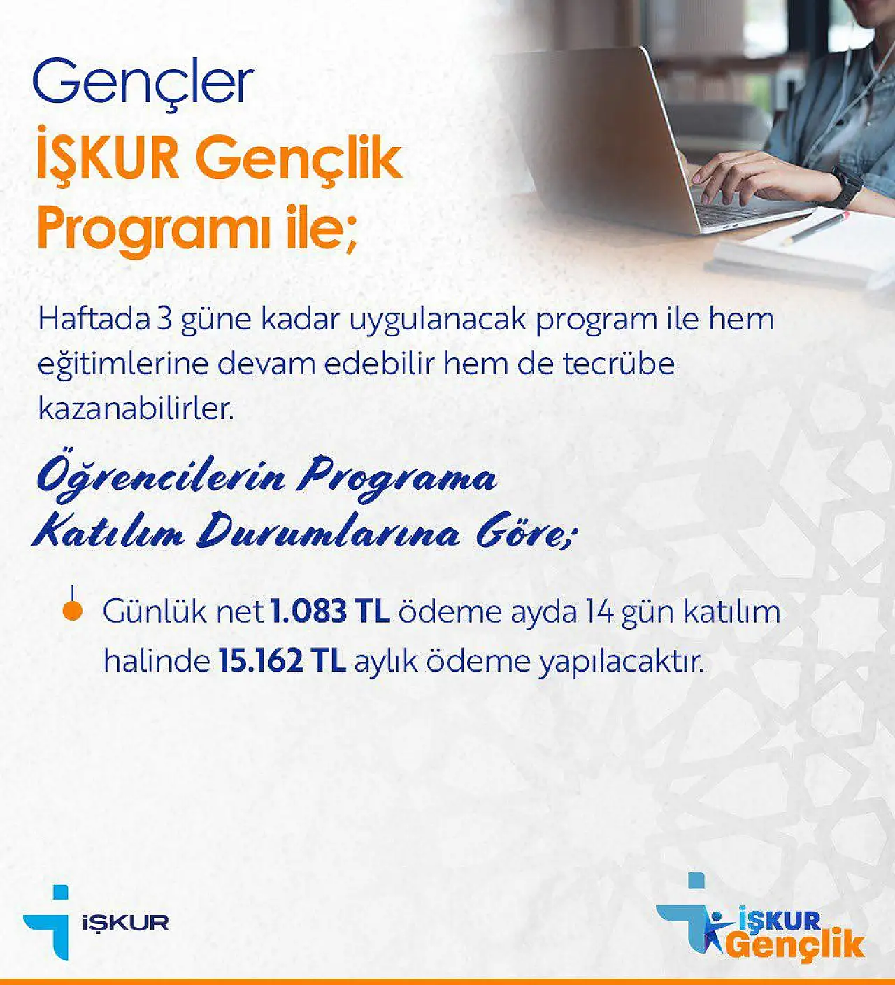 Üniversite öğrencilerine iş deneyimi kazandırmayı amaçlayan İŞKUR Gençlik Programı, bu yıl 150 bin öğrenciye ulaşacak şekilde genişletildi. Program, derslerden geri kalmadan hem eğitim hem gelir imkanı sunuyor.